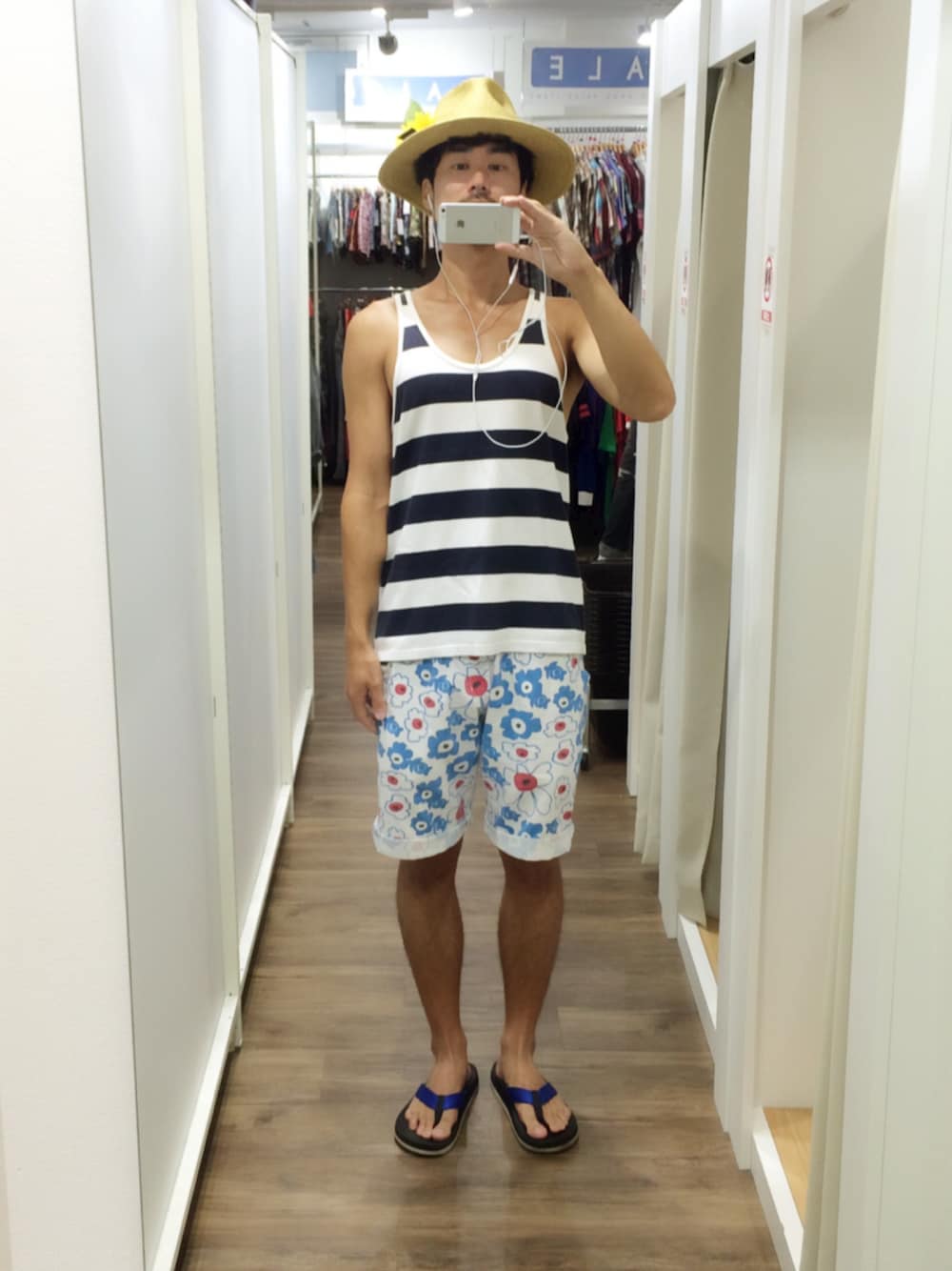 ハット ノーブランド タンクトップ ナンバーナイン ショートパンツ オーシャンパシフィック ビーサン サンダルマン