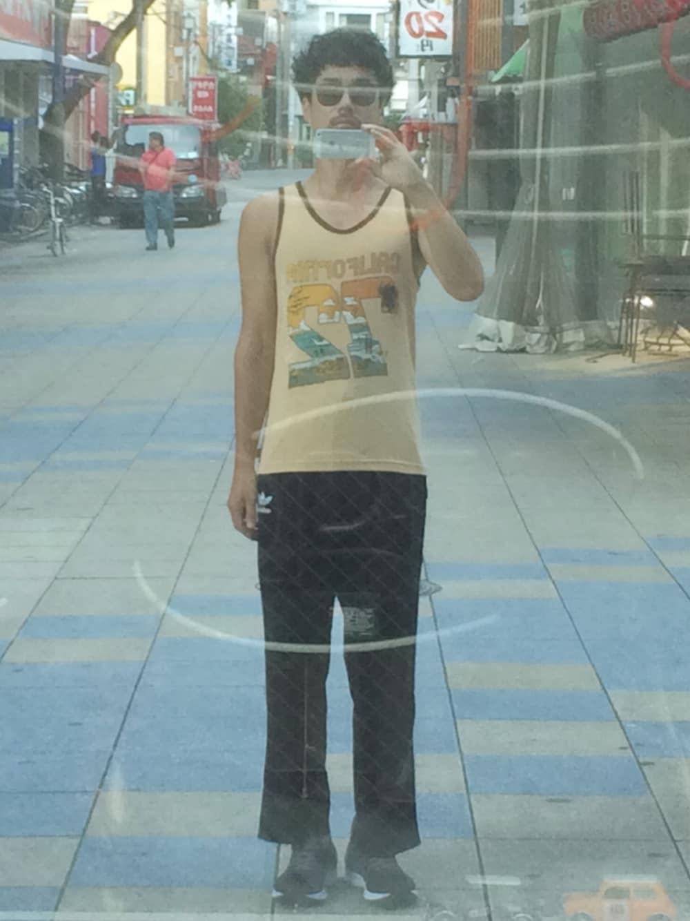 サングラス レイバン タンクトップ US RAGS ジャージパンツ アディダス スニーカー アシックス 朝のお散歩