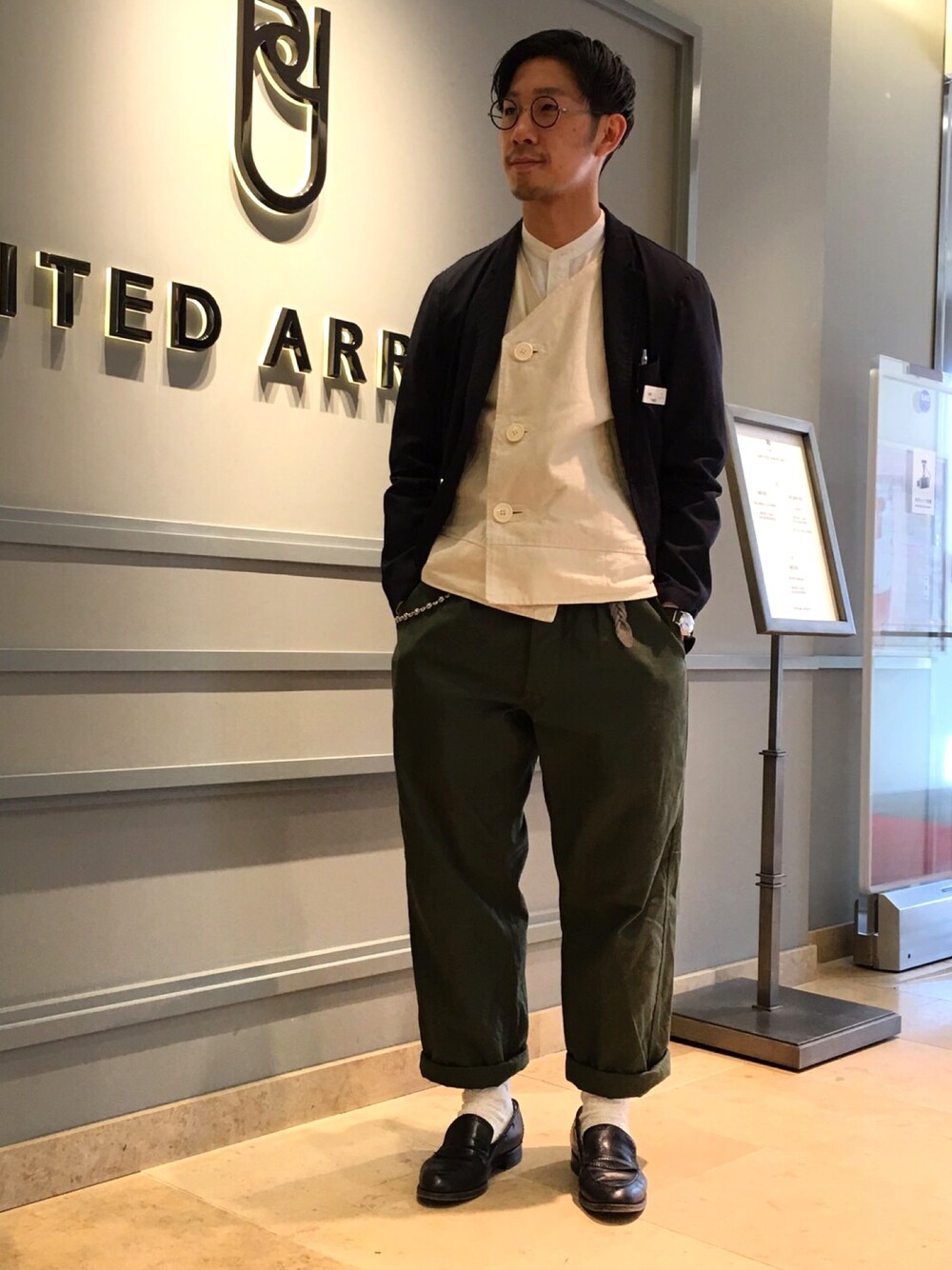 ジャケットにミリタリーをプラスしドレスダウンさせたコーディネート。 FRENCH ARMYのパンツはデッドストックのもの。トレンドのワイドシルエットでタックが入っており履き心地も気に入ってます!
