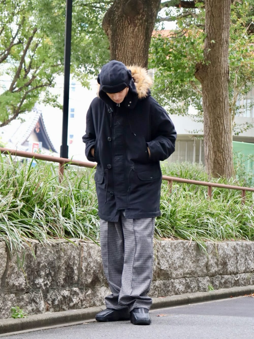〝N-3B〟をメインにフリースのキャップと合わせ保温性抜群のコーデを意識しました! フード周りもボア素材のためとても暖かくファーもボタンで取り外し可能! そしてウエストもドローコードでフィット感を変更可能なため様々なスタイリングができます!