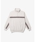 〝LINE PIPING HALF ZIP SWEAT PULLOVER〟をメインに全体を同系色でシンプルなコーデを組みました! シンプルなハーフジップにラインとパイピングデザインがアクセントになっており1枚でもインナーにもおすすめなアイテムとなっています!