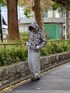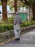 〝CAMO BB SMALL WAPPEN SWEAT HOODIE〟をメインに着用! 単体でも可愛いカモ柄デザインで様々なコーディネートのアクセントになります! 同シリーズのパンツとセットアップでも着用可能です!