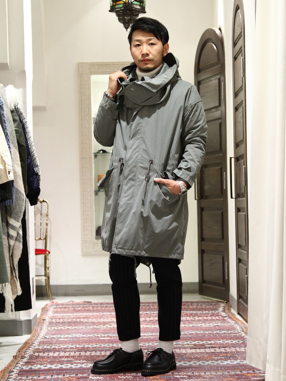 kouki.Mのモッズコートを使ったコーディネート