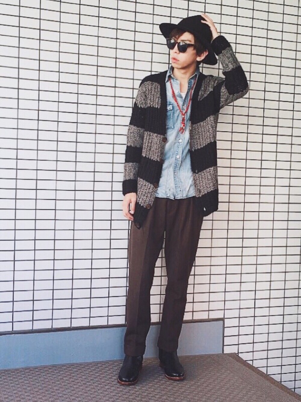 ヤマダ コウキのカーディガン/ボレロ「Border cardigan」を使ったコーディネート
