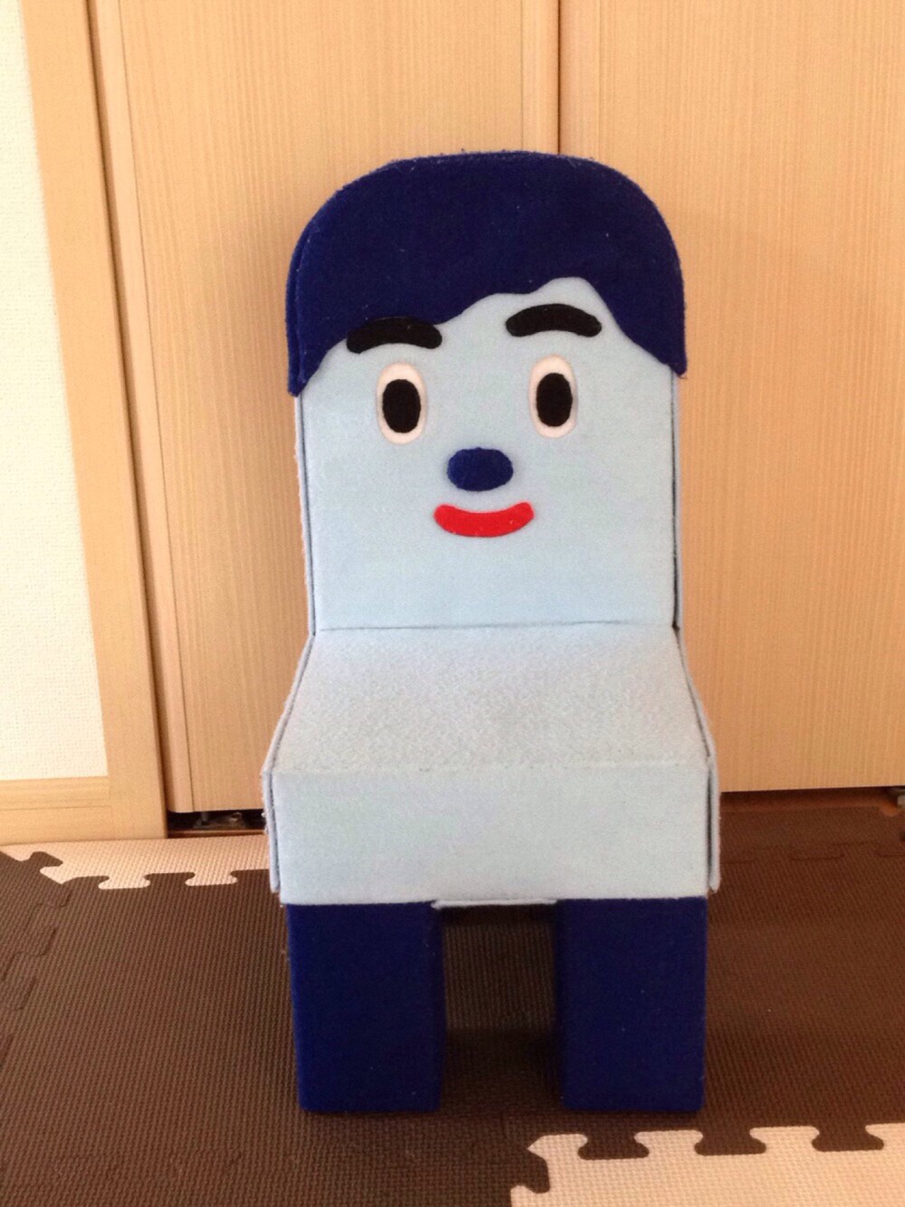 半年かかって夜な夜な頑張って作った息子が大好きなこの方。 初めは喜んで優しく触れてくれました。ところが、10分ももたず… 表面のフェルトの繊維をむしり、繊維にフゥーっと息を吹きかけ飛ばして遊び …ひっくり返してアラを探され、そこから指を突っ込み、身ぐるみはがされそうになっていたところを助けるという… 危うく正体が牛乳パックだということがバレそうになりました…(;・д・) 徐々に慣れてもらおう…。