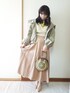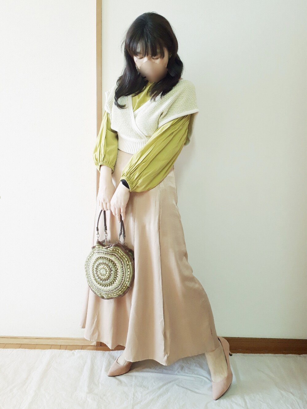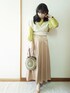 おはようございます☺️ 今日はグリーンのニットベストコーデ🎵 グリーンイエローのバックリボンブラウスにグリーンのカシュクールニットベストとベージュのバックリボンスカートを合わせました💕 カーキのマウンテンパーカー羽織ったのは2枚目に😌 後ろ姿レースアップリボンで可愛いので後ろ姿も見てね💕 小物は グリーンの手作りのサークルバック ピンクベージュのパンプス 手作りのイエローグリーンの大粒ビーズイヤリングです。 前回コーデをY.S.Kさん、マキシさん、いましさん、myuuちゃんがフォルダに入れて下さいました🙆どうもありがとうございます💕 いつも見て下さりどうもありがとうございます☺️