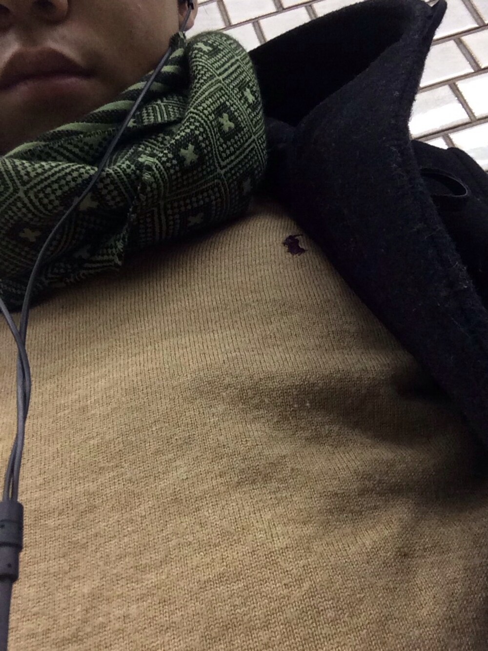 ベージュ系のカーディガン/ボレロを着用したメンズの冬コーディネートの1枚目の写真