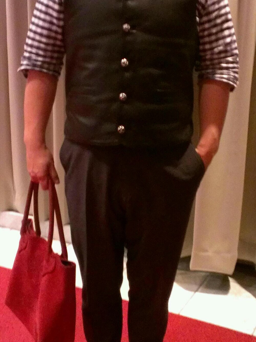 レッドカーペットに合わせてクロムハーツの赤いトートバッグをもちました。