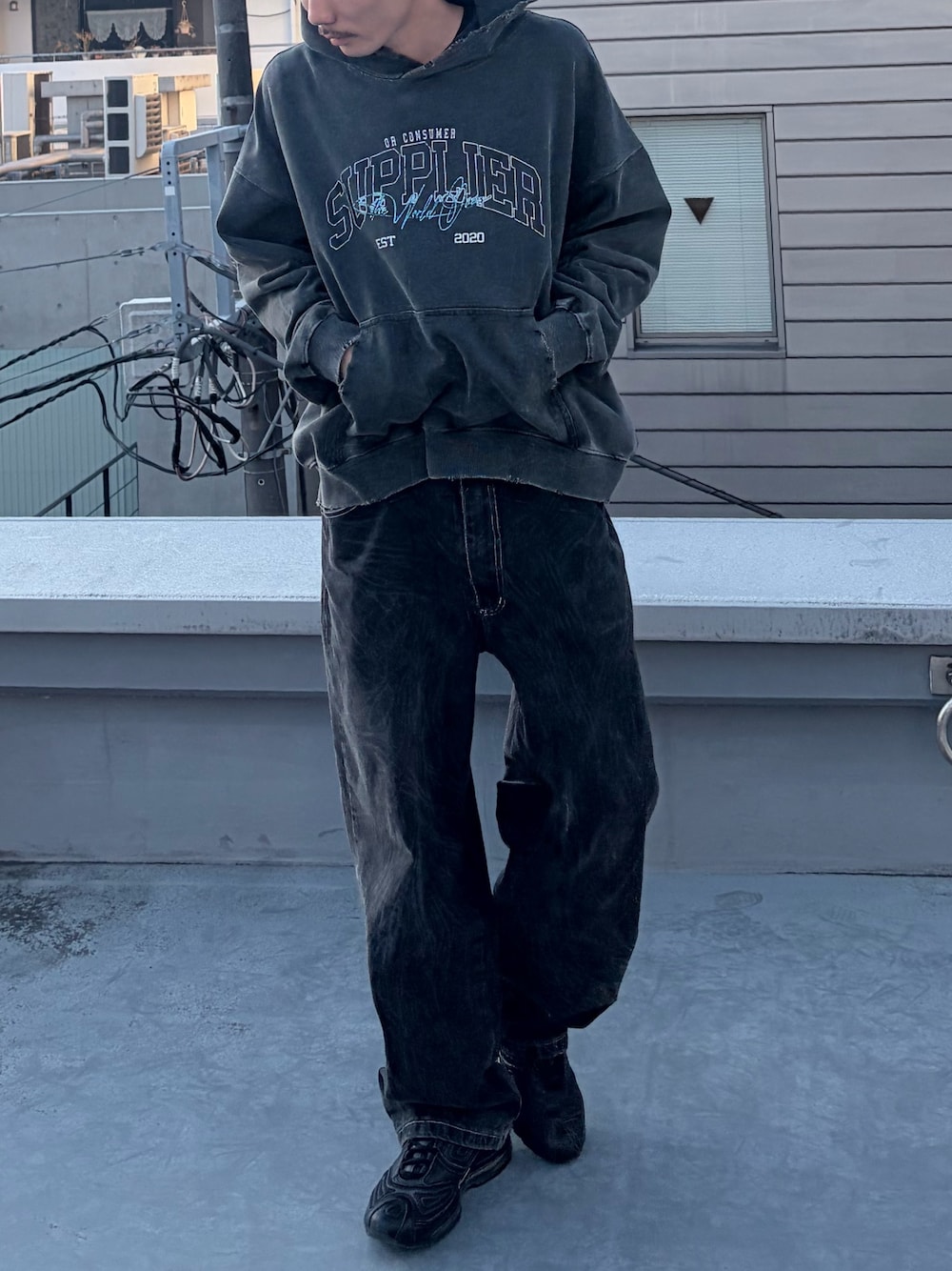 koushiro(ROOPTOKYO)のパーカー「SUPPLIER/サプライヤー Vintage Wash College Logo Hoodie カレッジロゴ フーディ―」を使ったコーディネート