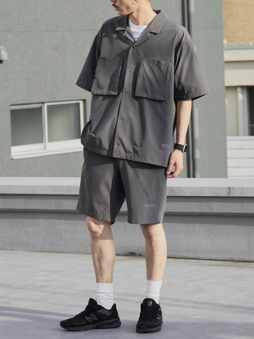 koushiro(ROOPTOKYO)のシャツ/ブラウス「WILD THINGS/ワイルドシングス OPEN COLLAR POCKET SHIRT ミリタリータグ オープンカラーシャツ 2026年春夏」を使ったコーディネート