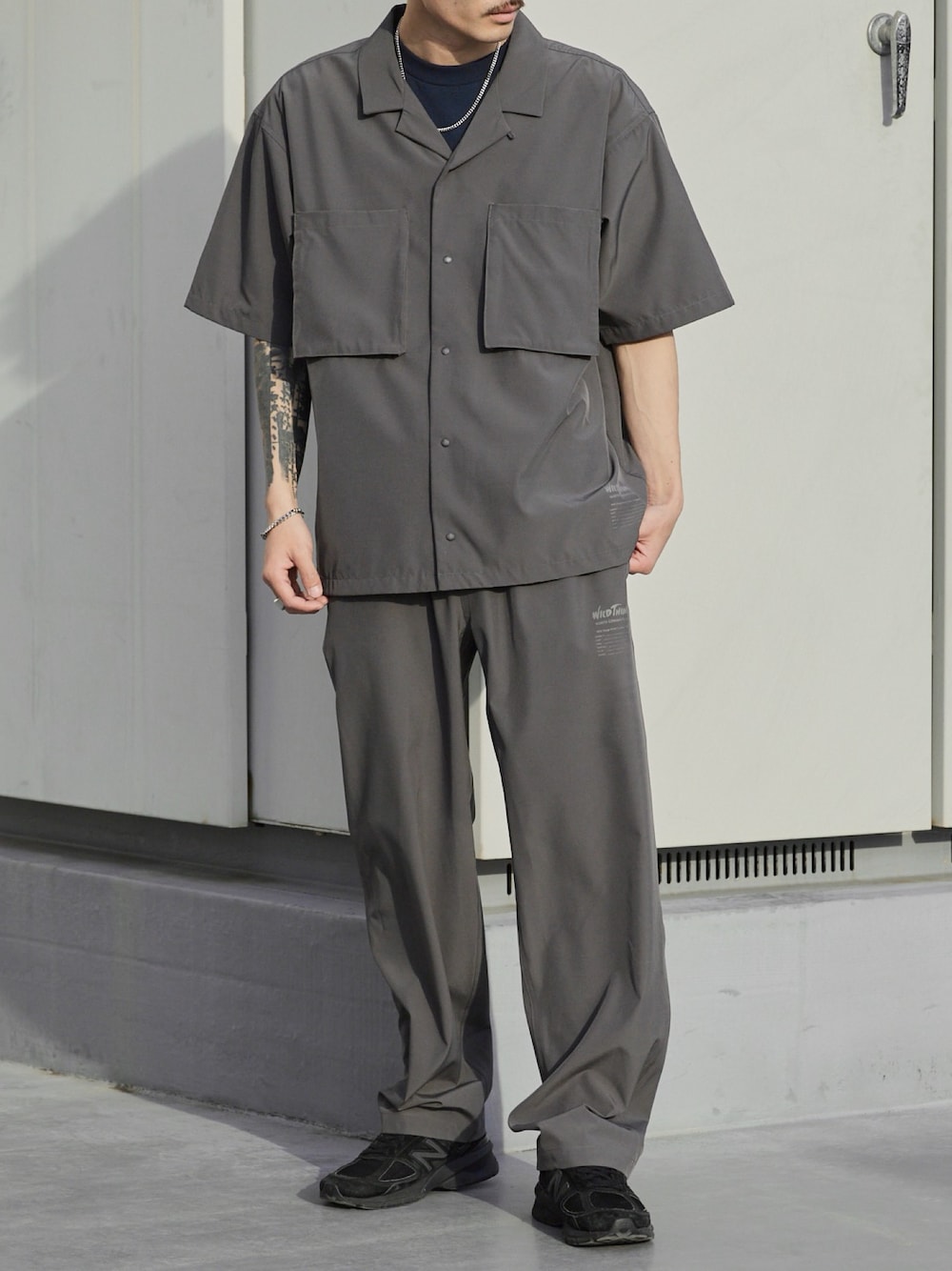 koushiro(ROOPTOKYO)のシャツ/ブラウス「WILD THINGS/ワイルドシングス OPEN COLLAR POCKET SHIRT ミリタリータグ オープンカラーシャツ 2026年春夏」を使ったコーディネート