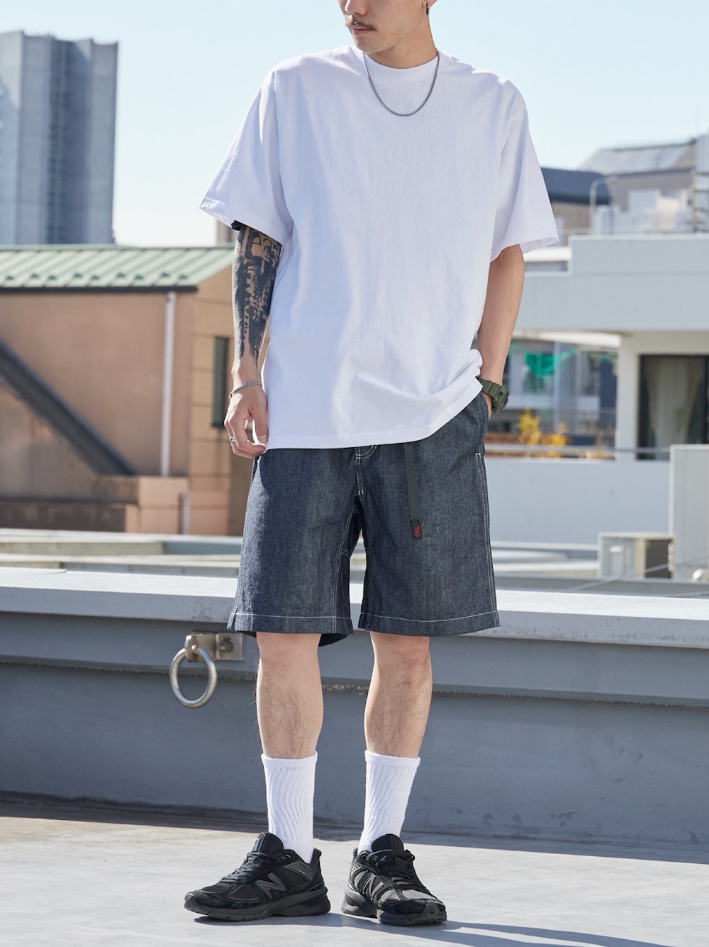koushiro(ROOPTOKYO)のデニムパンツ「Gramicci/グラミチ JAPANESE CHAMBRAY SHORT ショートパンツ ハーフパンツ ストリート 2026年春夏」を使ったコーディネート