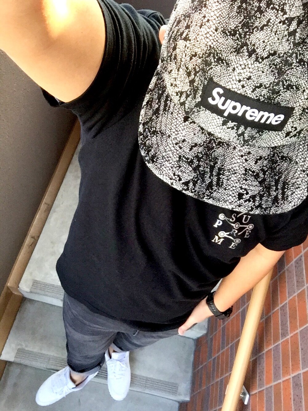 NurseManのキャップ「14A/W Supreme Jacquard Snake Camp Cap Black」を使ったコーディネート