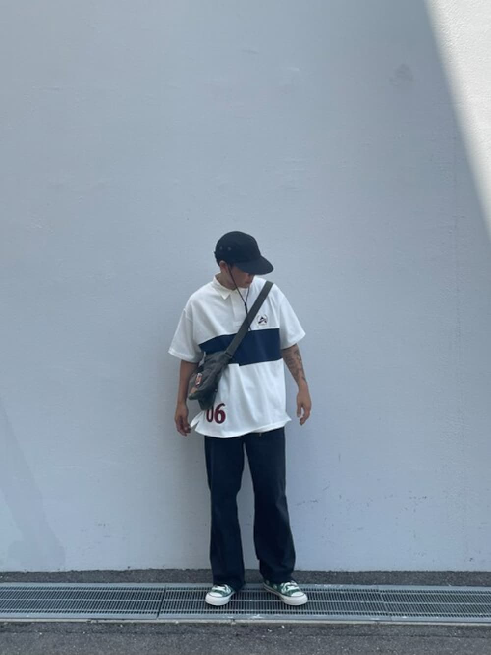 木山皓介のポロシャツ「SALING TEAM SHIRT / セイリング チームシャツ / AVIREX / アヴィレックス」を使ったコーディネート