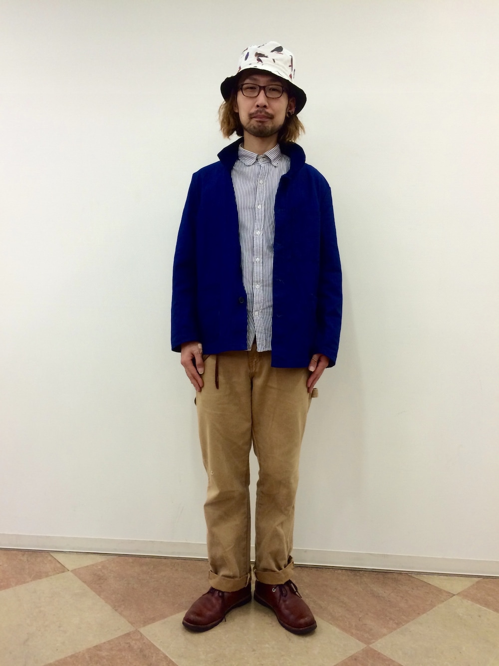 春なので、薄手のアウターを。 程よく冷んやりした空気が、良い感じで、今の季節が好きですねぇ。。 ハット:ノーブランド アウター:古着 シャツ:古着 パンツ:古着 ブーツ:古着 安くて良いモノが一番◎