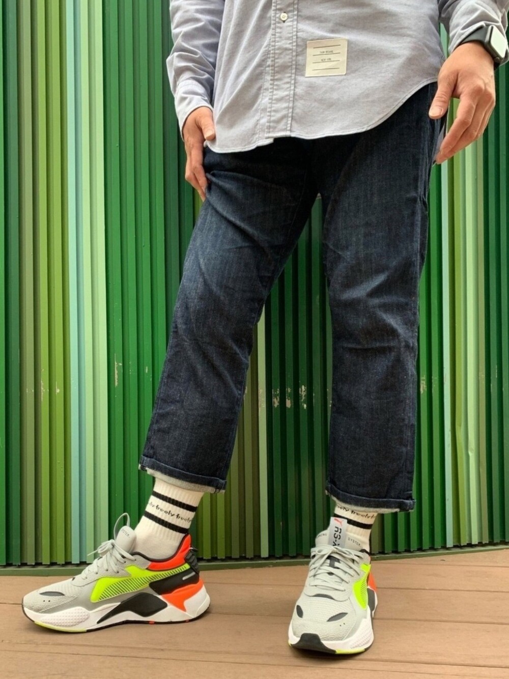 オックスフォードシャツ ユニクロデニム・クツシタボーイの靴下 カラフルPUMAスニーカーで崩してます 🤙🏼👨🏻🦱