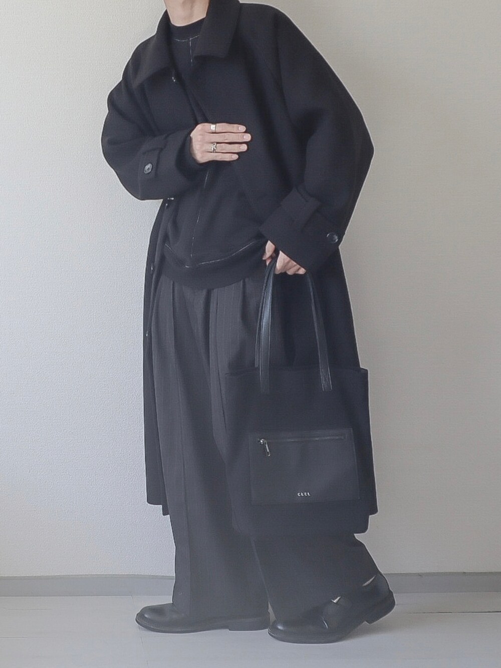 kotaのステンカラーコート「【CLEL】Tech Melton Loose Soutien Collar Coat/テックメルトン ルーズステンカラーコート」を使ったコーディネート