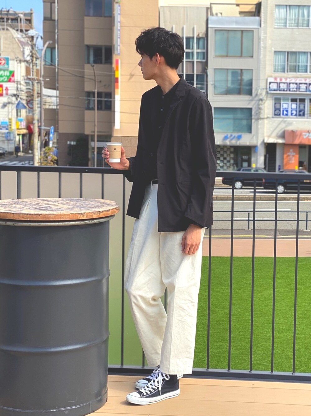 お疲れ様です!😊 今回は撮影中のオフショット笑 白黒モノトーンコーデです 王道の黒白は可愛くておしゃれに見える✨ テーラードジャケットは何着ても合う😎 よかったらいいね、お気に入り、フォローお願いします🙇♂️