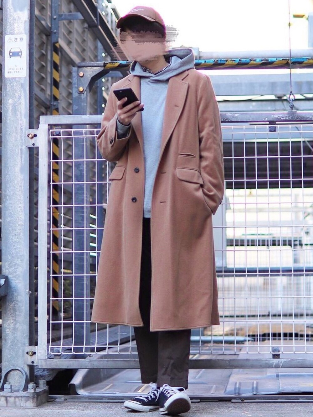 コウのチェスターコートを使ったコーディネート