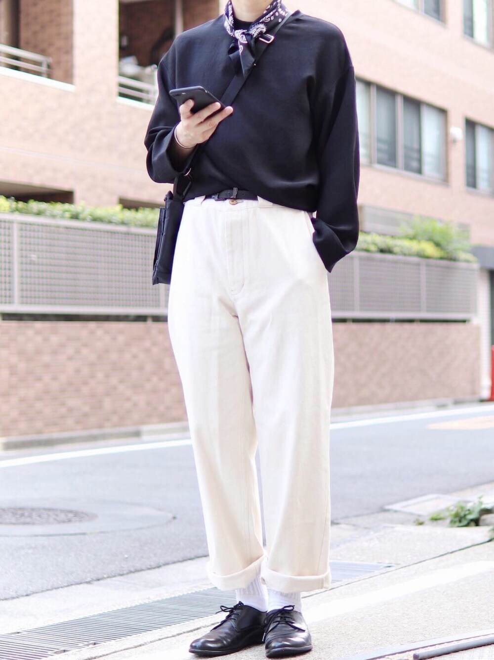 シンプルなモノトーンに スカーフをプラス🦓