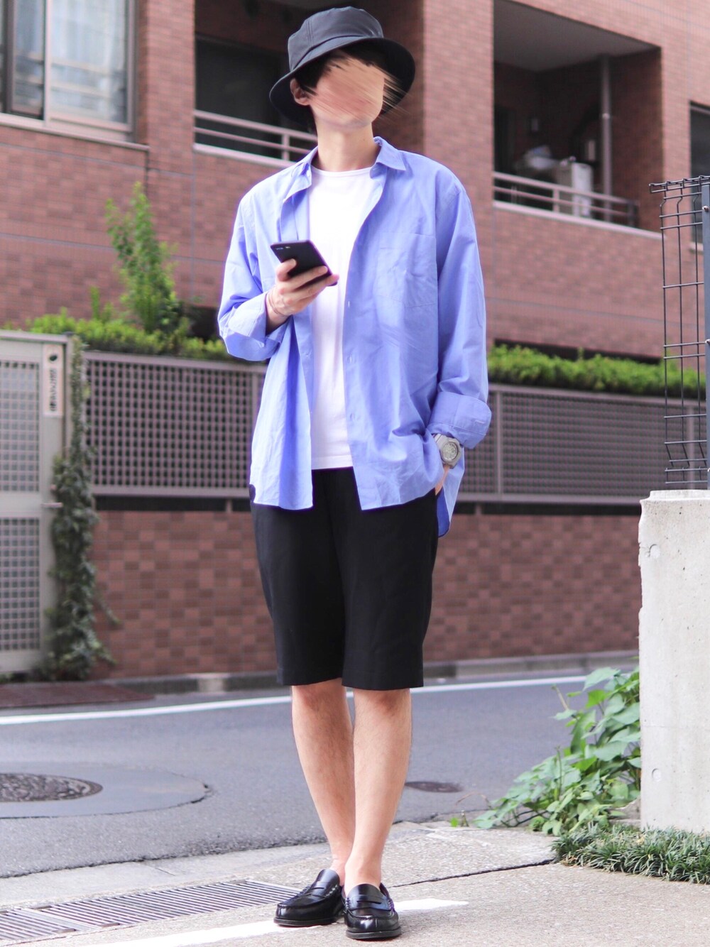 珍しくショーツコーデ。 ゆったりとした長袖シャツでYシルエットのバランスを取りました。 少しシンプルなのでバケットハットを足して、足元はローファー。 シャツは2019awの新作コモリシャツ。 かなり使いやすい身幅と着丈感。 洗いざらしで着れるのも嬉しいですよね😊