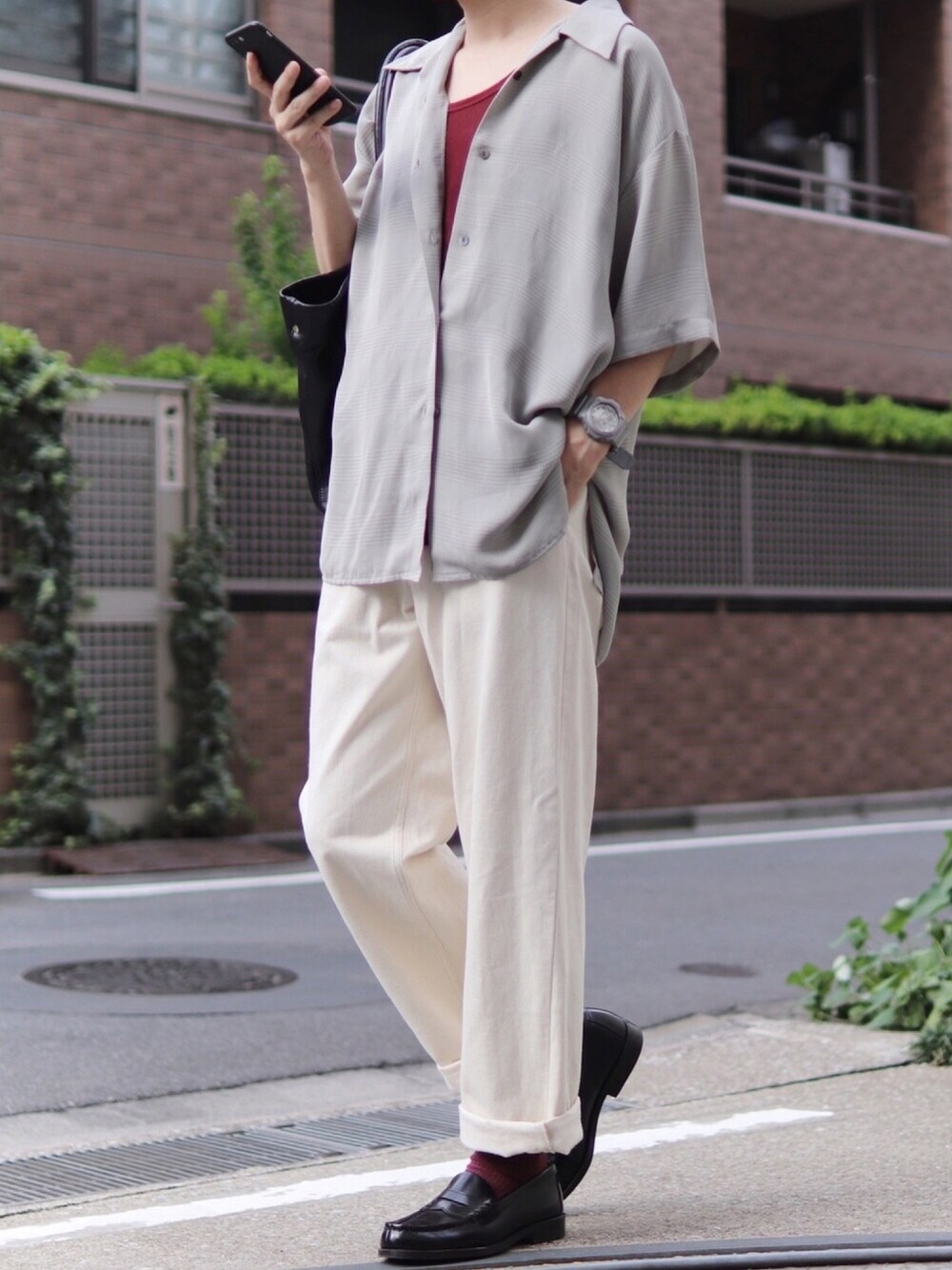 ミルク入れすぎたカフェオレコーデ。 インナーと靴下でえんじ色を 差し色にして🍁