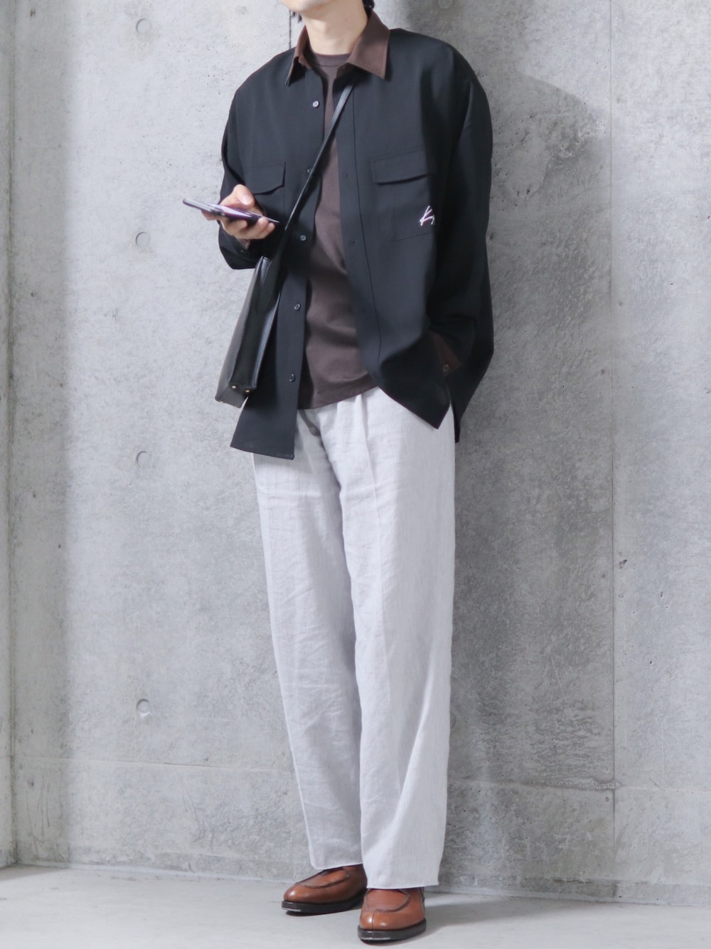 Kappa/カッパ 別注 リラックスレギュラーカラーオーバーサイズ長袖CPOシャツ/anchor smith 襟と袖口のブラウンがかわいいシャツ。 シワになりにくそうなサラッとした素材感も好みです。 #pr