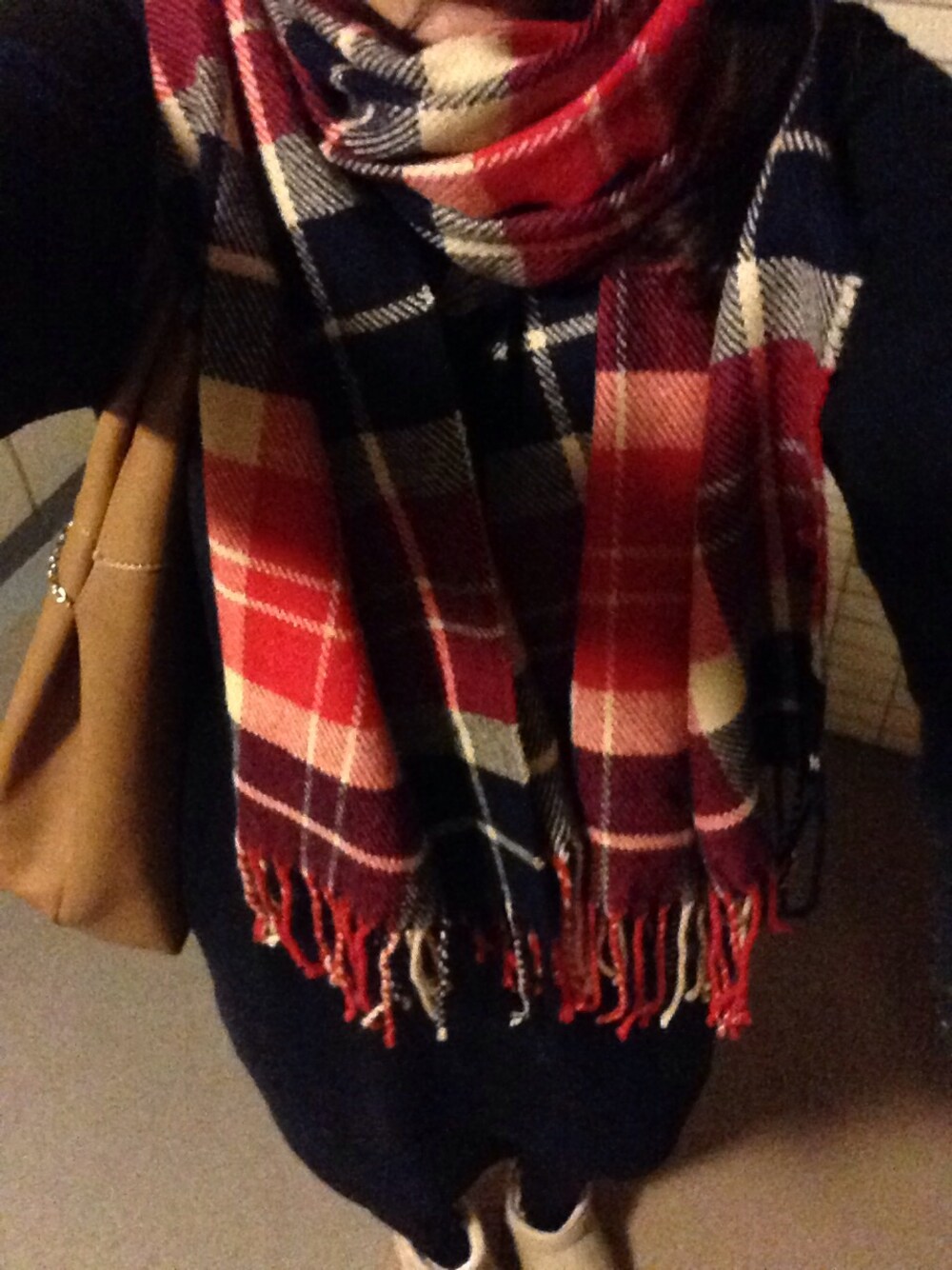 シンプルな黒のニットは通勤楽チンスタイルに☆ ストールは寒さに合わせて首に巻いたり肩にかけたりしています❁.*⋆
