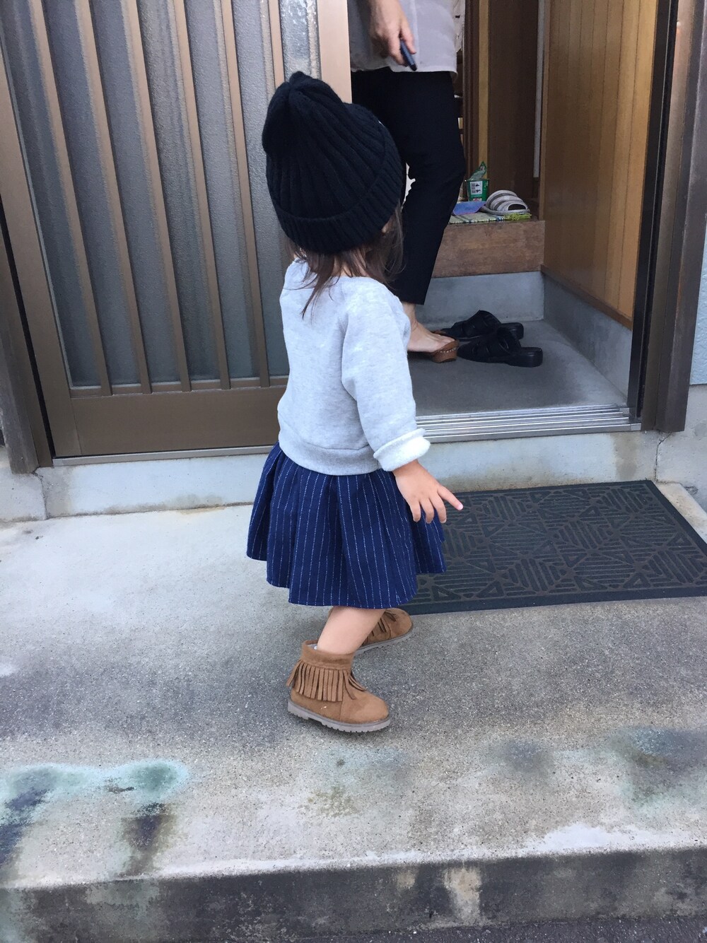 今日からWEARデビュー❤️🎉 久しぶりにしまむら行ったら一目惚れして即買い♡ ハリスツイードコラボのワンピース♡ スカートはツイードでストライプがまたはかわいぃ♡