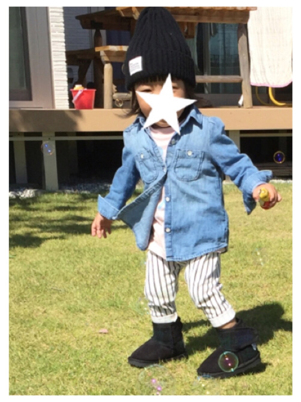 いつも同じよーなコーデを見て頂きありがとぅございます♡ 今日はかーちゃんの皮膚科の付き添い★ 病院嫌いだから、例えかーちゃんの用事でも関係なく泣くかと思ったけど、泣かずにお利口さんでした😊✨ 帰ってシャボン玉見つかって、お昼食べずにあそんだー😭 ただいまお昼寝中〜♡♡ ハリスツイードしまむらコラボのムートン、初おろし♡♡