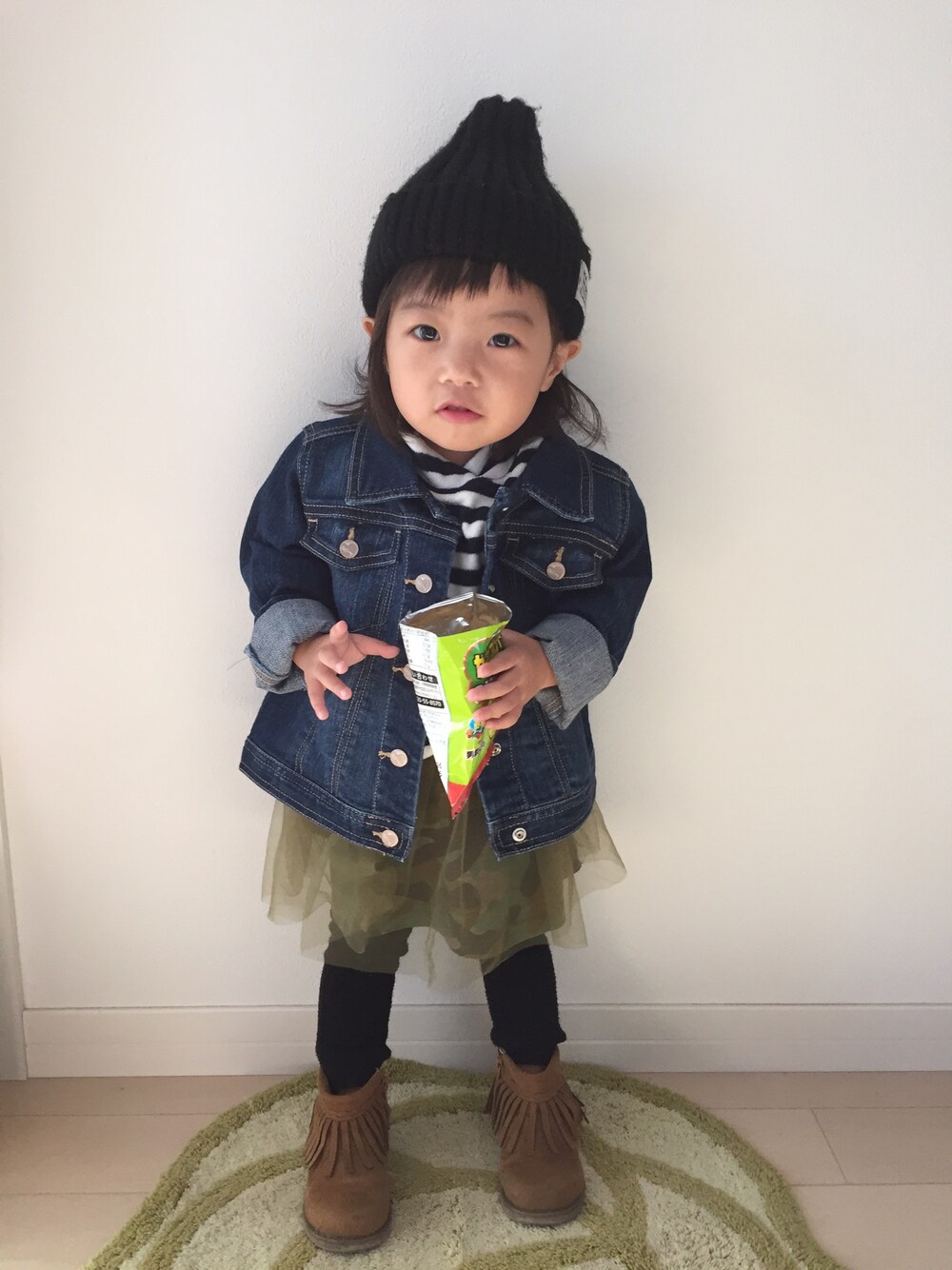 今日の娘⑅◡̈* ボーダー✖️カモフラ ベストコンビよね😊👍 今日は暖かかったから、おNEWのアウター♡ ずっと欲しかったけど 微妙なデザイン違いで中々買えず… セールで半額だし、ばあちゃんが買ってくれたよー😁😁 ありがとー♡♡