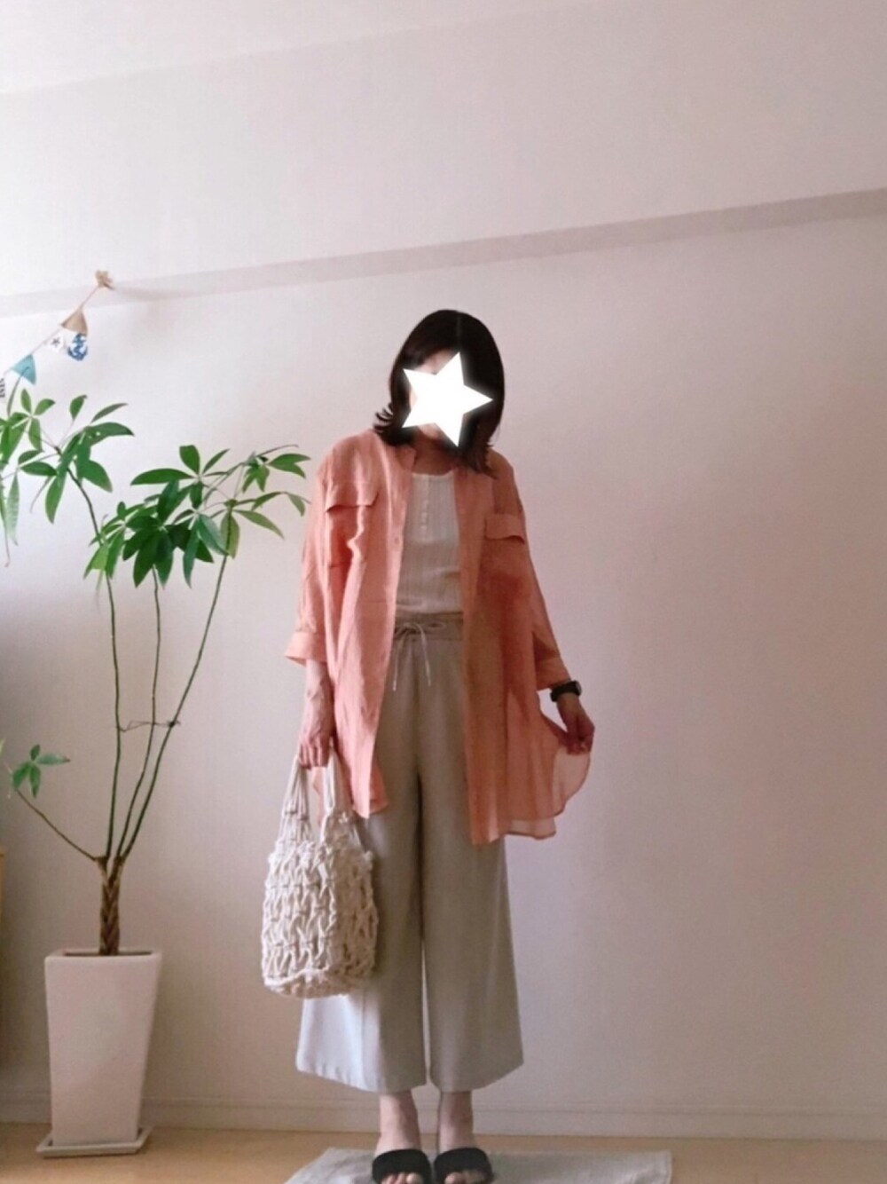 今晩は✨ シアーロングシャツコーデ👚♪ ブルーも好きですが、今年はピンクが気になります💓 透け感が、夏らしくオススメです☺️