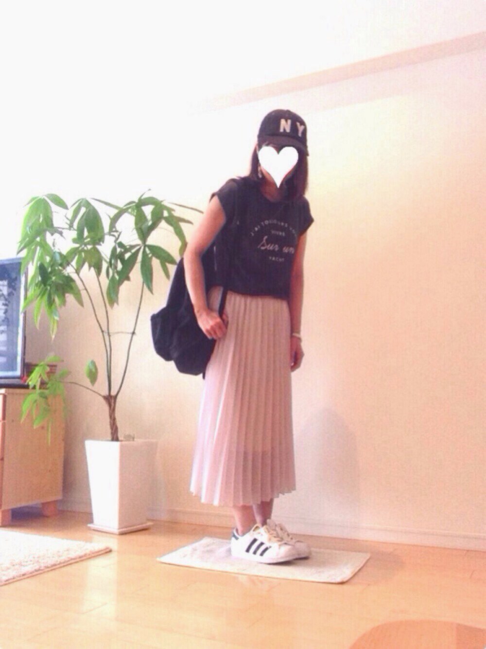 こんにちは^ - ^ 今日は、ジメジメしていて、風が強いです💦 フラを踊って来ました🌺 良い汗をかき、気持ち良かったです! 踊るって、楽しいな🎵 薄いピンク色のプリーツスカートコーデです♫