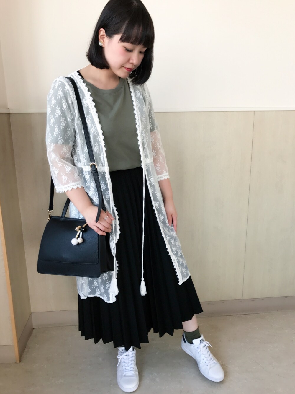 こんにちわ☺︎ 髪を切って黒髪にしました✨ 高校生以来かな( ˙ᵕ˙ ) そもそも地毛も栗色に近いので 一時見慣れなかったです(笑) コーデはモノトーン×カーキ☘ レースガウンで色味の重さを軽減させてます← スニーカーも誕生日の時にバックと一緒に 彼氏さんに買ってもらったものです\❤︎/ おそろコーデもしました~(*´艸`)❤️ 最近立て続けにいろんな事があり バタバタしているので また落ち着いたら更新します⭐️ では☺︎