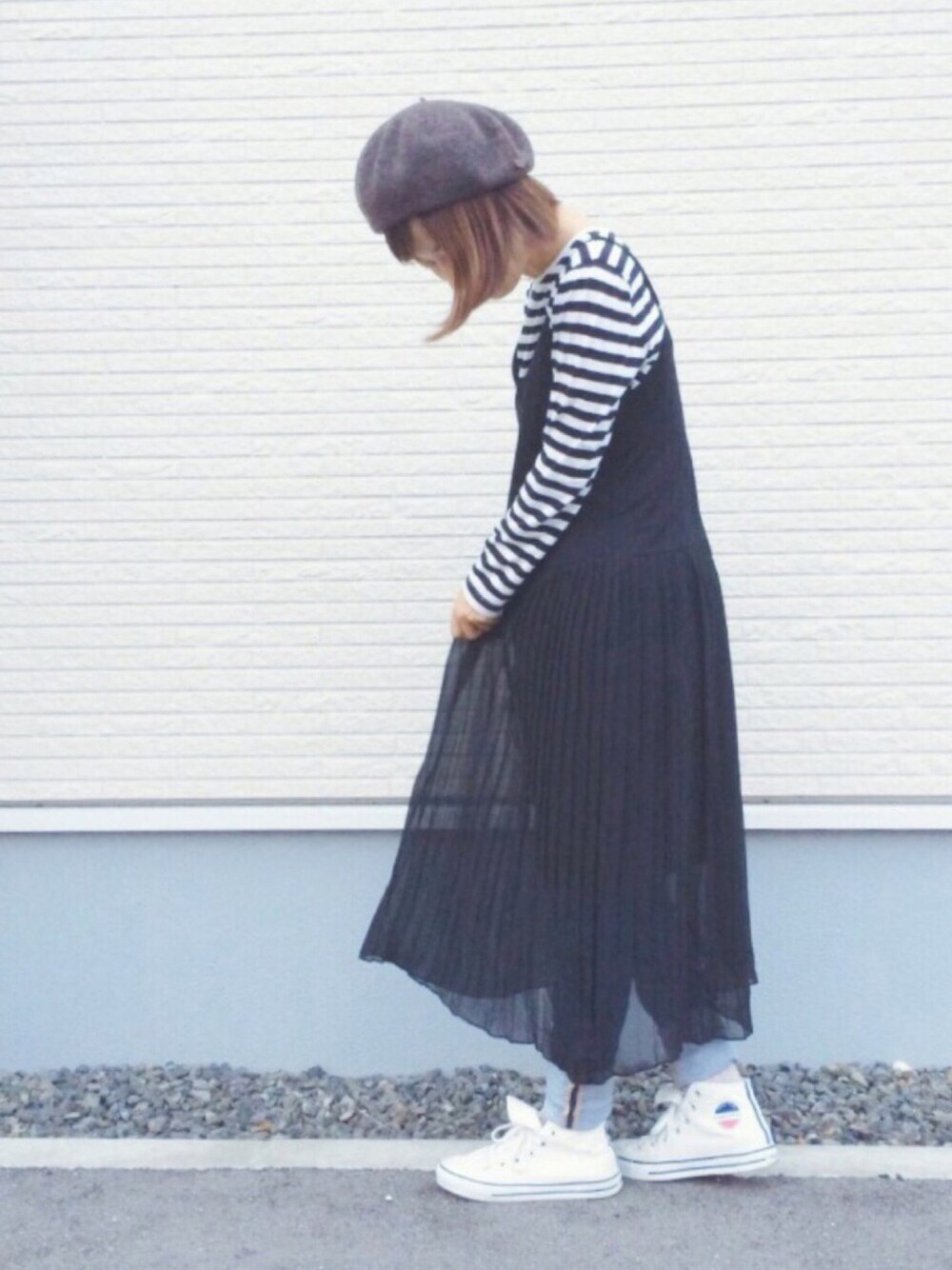 K o z u のハンチング/ベレー帽「厚地ワンポイントベレー帽」を使ったコーディネート