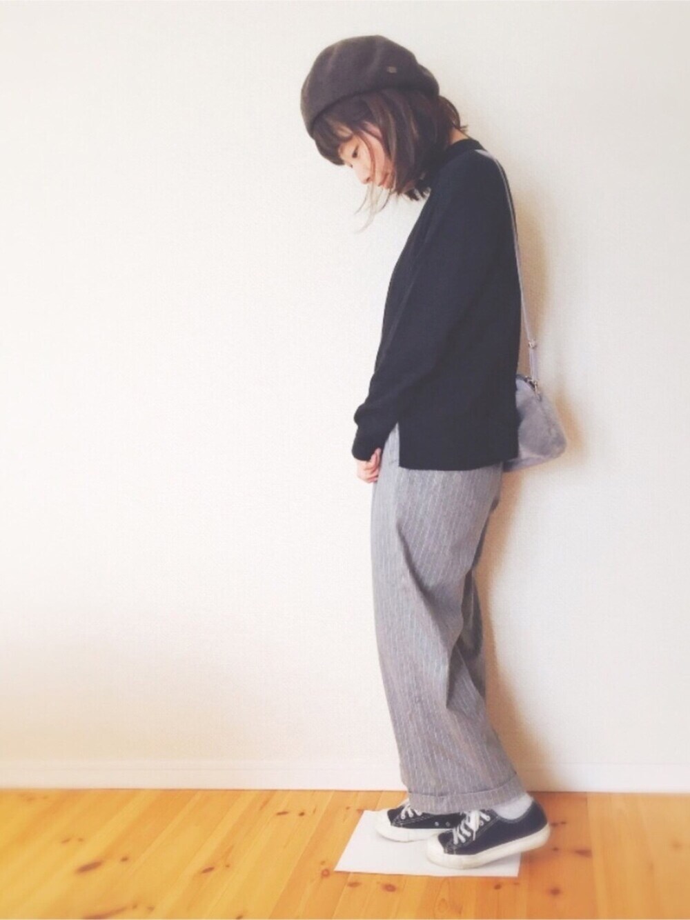 K o z u のハンチング/ベレー帽「厚地ワンポイントベレー帽」を使ったコーディネート