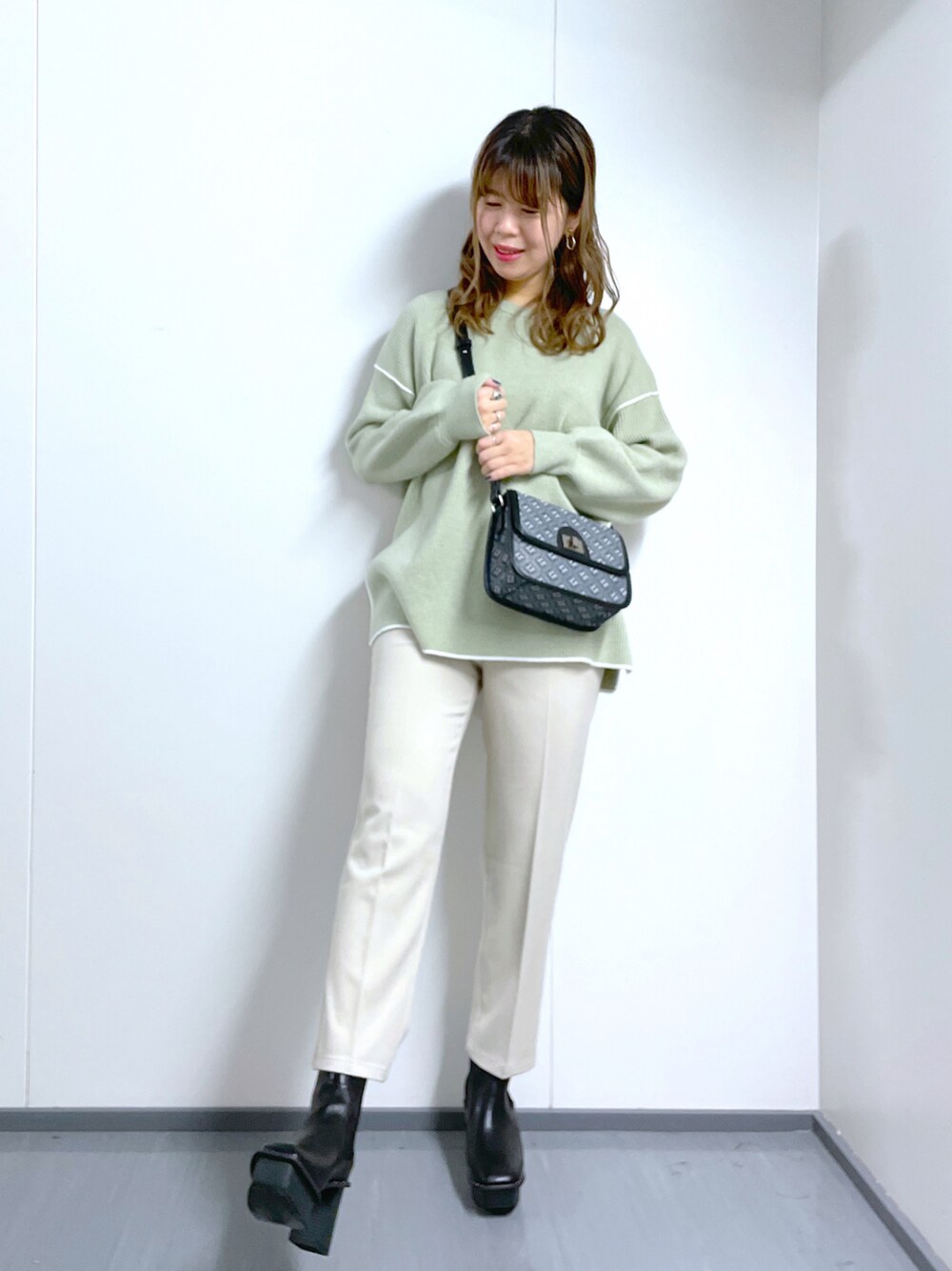 さわのニット/セーター「配色パイピングニット 261345」を使ったコーディネート