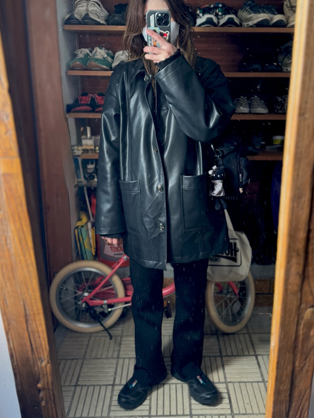 miyukiのカバーオール「フェイクレザーカバーオール」を使ったコーディネート