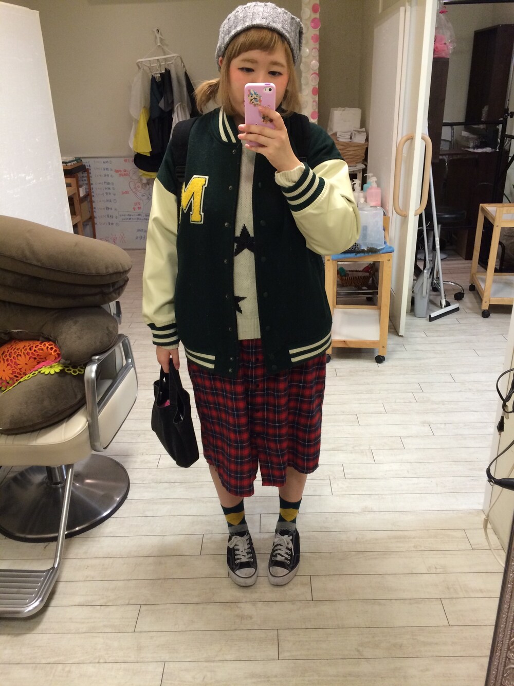 なちゅのスタジャン「WEGO/ワッペン付きBIGスタジャン」を使ったコーディネート