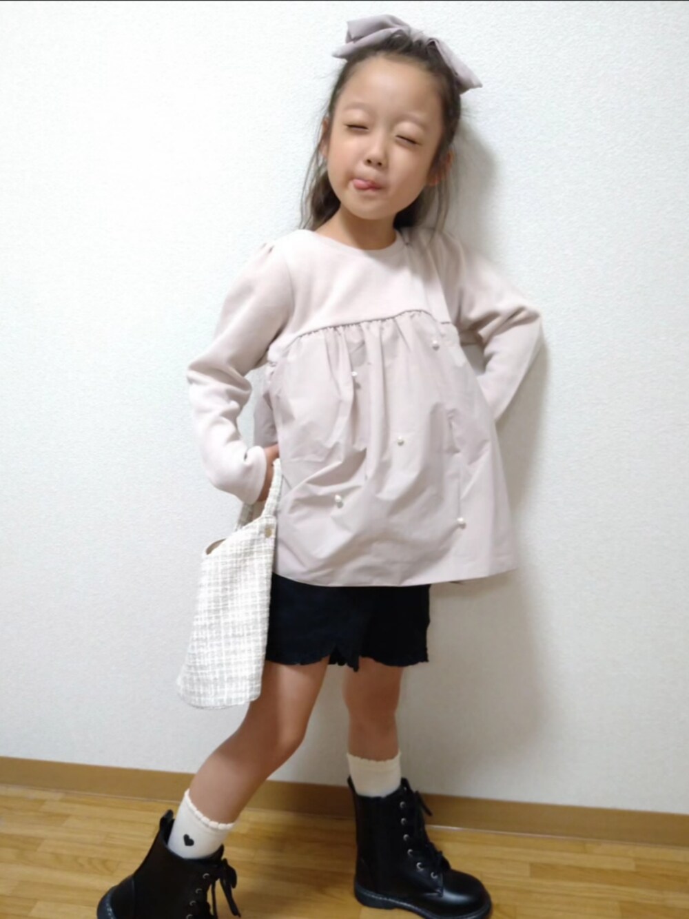 samama1216のTシャツ/カットソー「【リンク】パールドットドッキング長T★」を使ったコーディネート