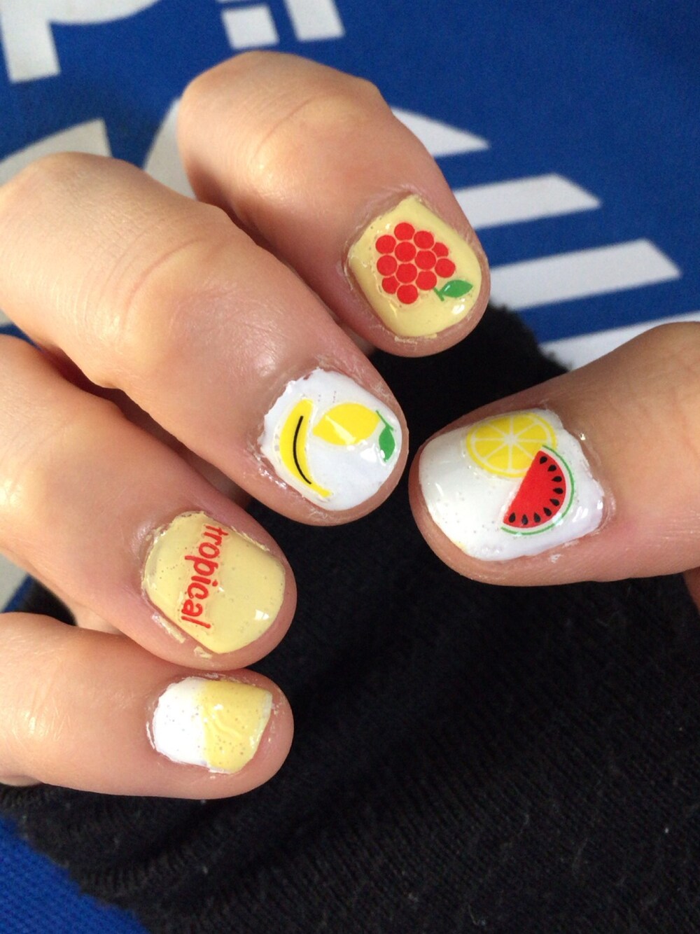 ごちゃっとフルーツネイル。 上手くはないですが夏カラーで。 NAIL HOLIC WT005 SP012