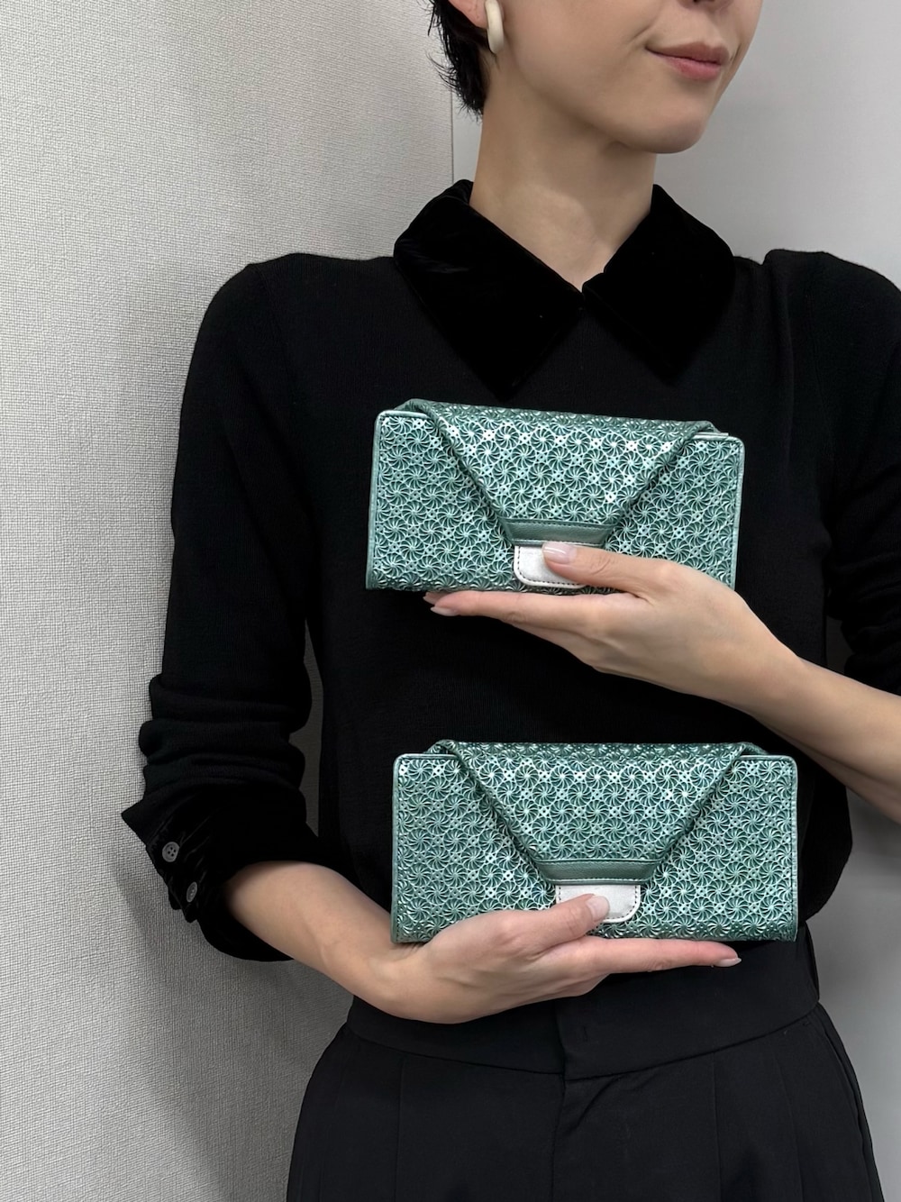 【HIROKO HAYASHI】 GIRASOLE PIPERITA(ジラソーレ ピペリータ)長財布 GIRASOLE PIPERITA(ジラソーレ ピペリータ)長財布ミニ --------------------------- 身長:170㎝ --------------------------- 素材:牛革 デザイン:数量限定 型押し型抜き 光沢 ■スタッフコメント 2025年ホリデーコレクションは爽やかな光沢のペパーミントグリーンで登場! 華やかさはありつつ、グリーン×シルバーがスッキリオシャレな印象に ロングセラーで人気のジラソーレシリーズ、限定ならではの特別なカラーとデザインです しっかり入れても厚みが出にくく、スッキリお使いいただける"長財布" 小ぶりなバッグにもスマートに入る、手の収まりが良い"長財布ミニ" 所作まで美しく見せてくれる、リピーター率No.1の二型です