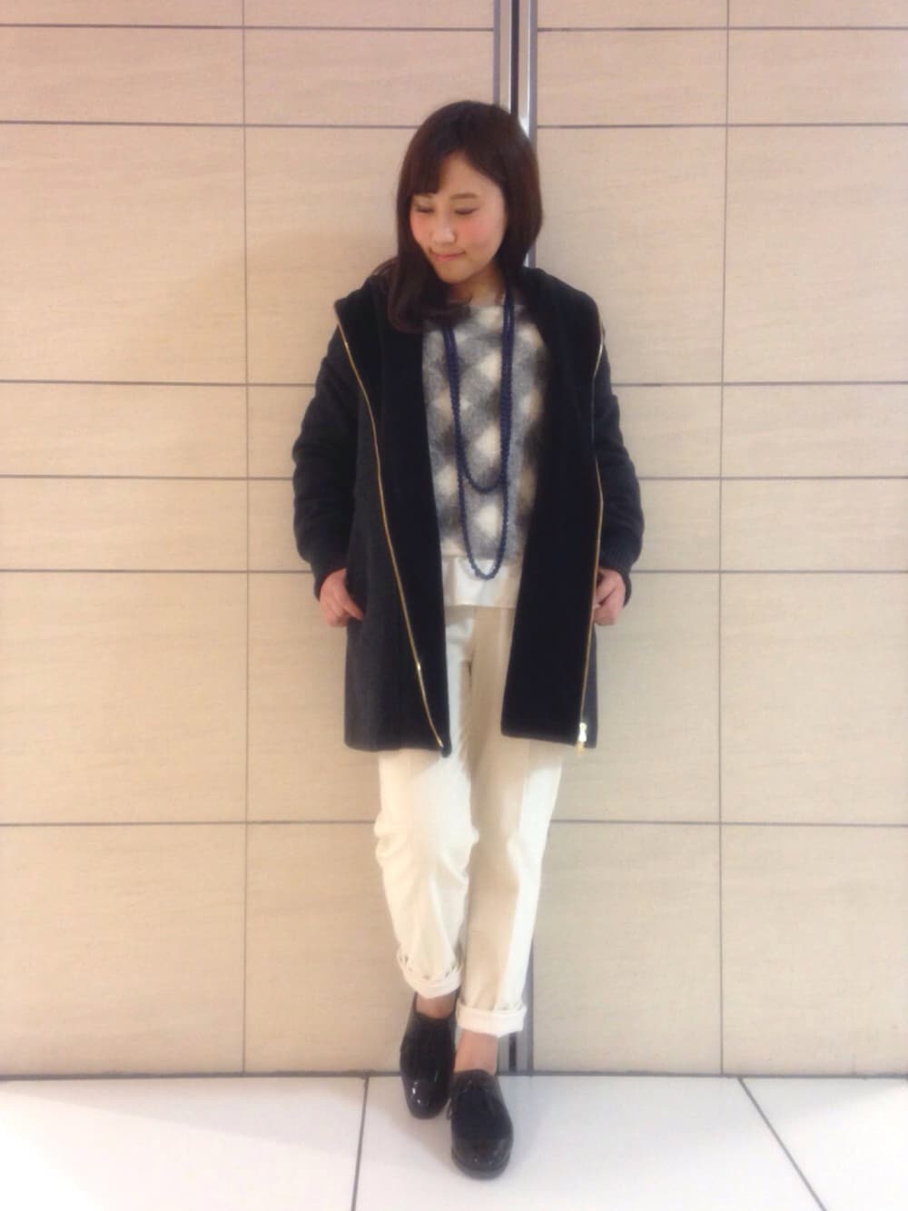 SRICのコートはデザインに凝っているので羽織るだけでオシャレ感がアップします! 着用アイテムは全て店頭販売しております。