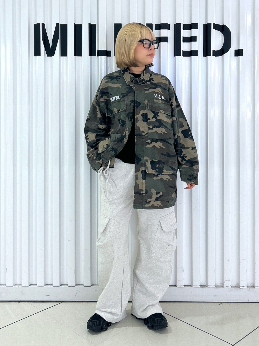 KARIN®︎のスウェットパンツ「GATHERED POCKET SWEAT CARGO PANTS」を使ったコーディネート