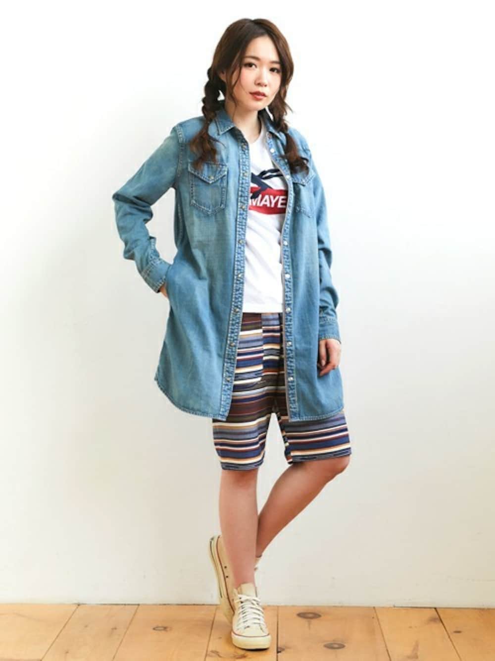 KRIFF MAYERのシャツワンピース「デニムワンピース(ハワイ)(ハワイスーベニア/刺繍/デニム/シャツワンピ/デニムシャツ/ワンピース)」を使ったコーディネート