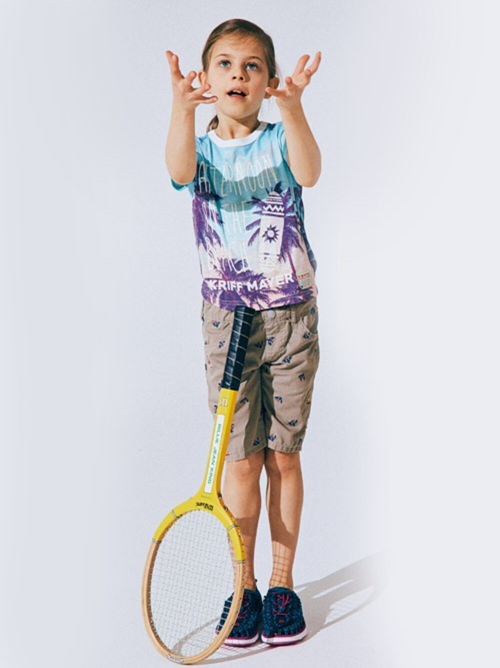 フォト系プリントのサーフテイストに飛び刺繍パンツをあわせた、かわいくかっこいいコーディネート!