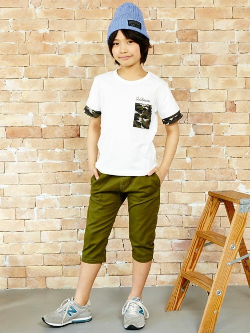 カモフラ柄がカッコイイ★ 袖部分がレイヤード風になっていて、ちょっとオシャレさも♪ 同系色でまとめて、すっきりコーデにしました!