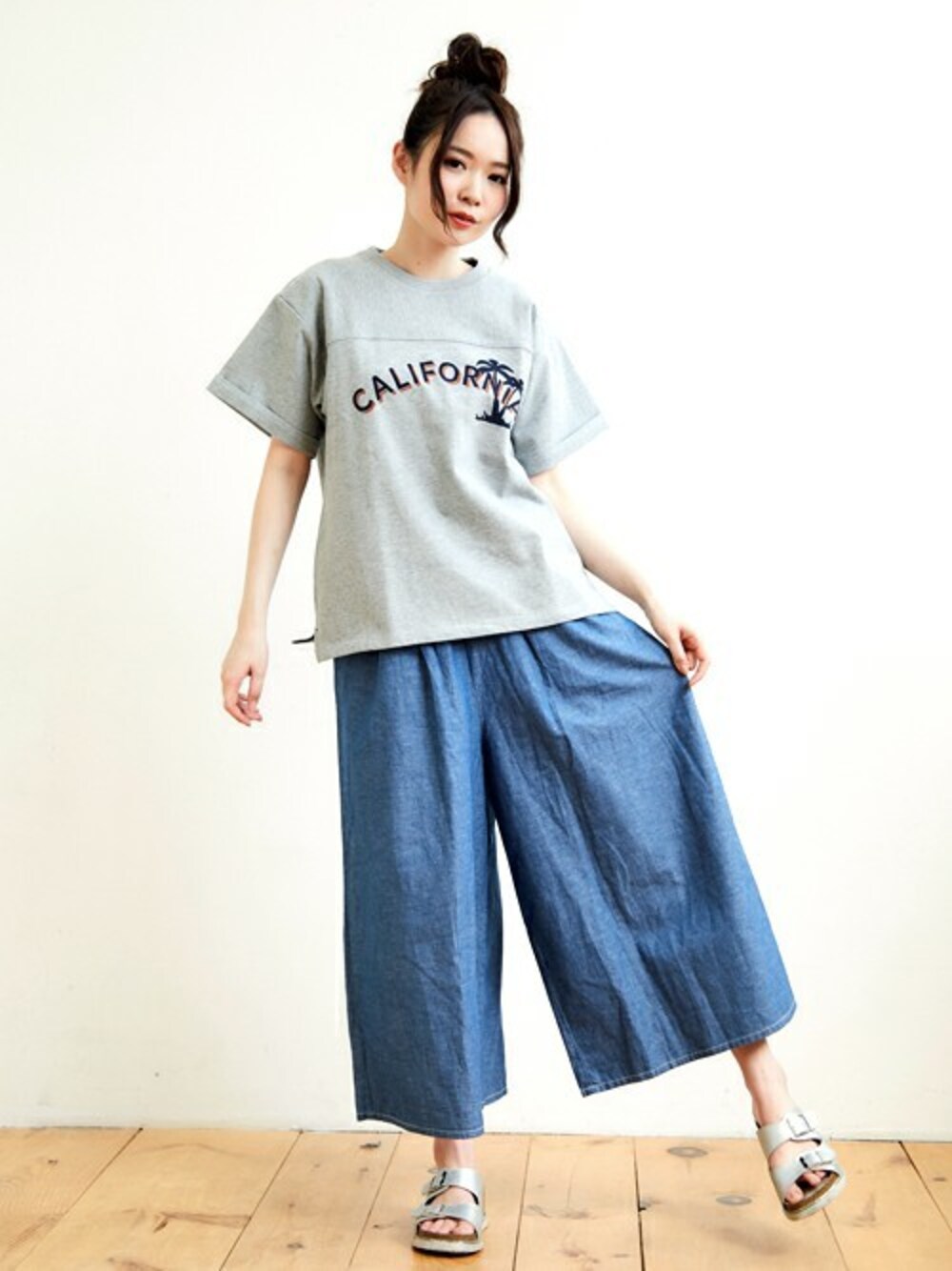 ビッグシルエットが今年らしいTシャツに、涼しげなスカンツを合わせ、ゆるっとカジュアルなコーデにしてみました。 Tシャツはお洗濯しても型崩れしにくい、TOUGH TEE(タフティー)シリーズです♪ お出かけはもちろん、お家の中でのリラックスタイムにももってこいのスタイリングです。