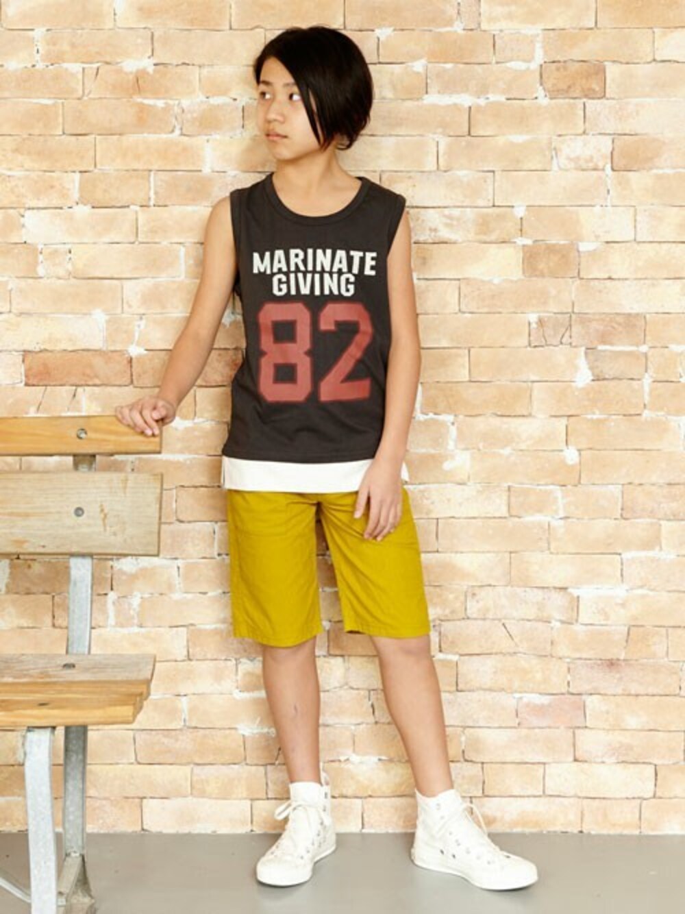 夏といえば、タンクトップ! 裾のカラー切替で、レイヤード風に♪ スポーティー元気キッズにピッタリなコーデです!