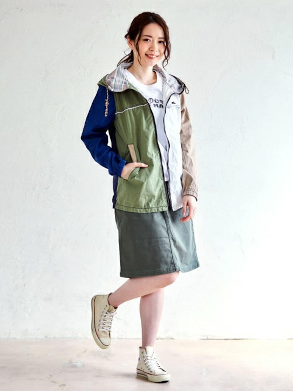 伸縮性抜群のクライミングスカートに、アウトドアモチーフのアイコンが可愛らしいプリントTシャツを合わせたフェスコーデにしてみました♪ 日焼け対策や、冷え防止にも最適なマウンテンパーカーは、 羽織りとしてはもちろん、腰に巻いて、コーデのポイントにもできるアイテムです★